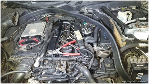 ## 벤츠 C200d 냉각수 누설과 흡기플랜 액츄에이터 모터 불량으로 인하여 출력저하 및 매연으로