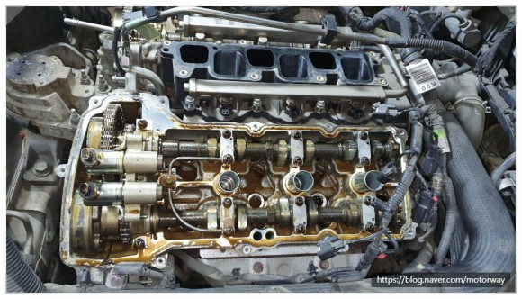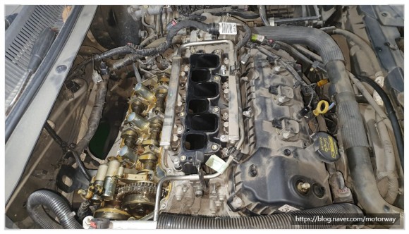 12. 엔진 헤드 부분에도 흡기 카본이 무지 많이 쌓여 있는 사진