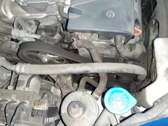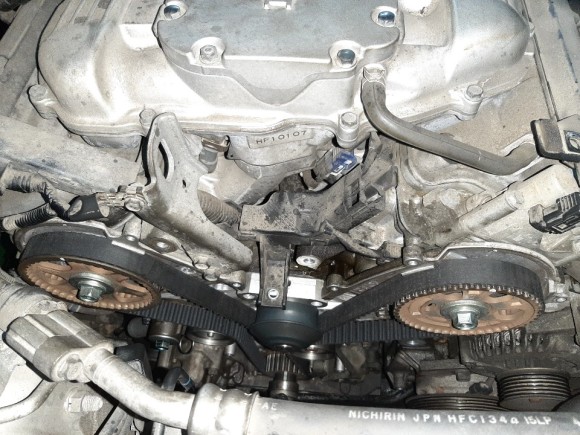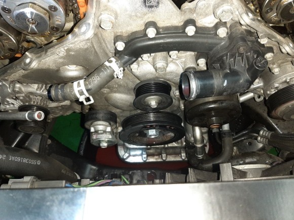 35.36 워터펌프와 텐션아이들 휀벨트 장착후 사진