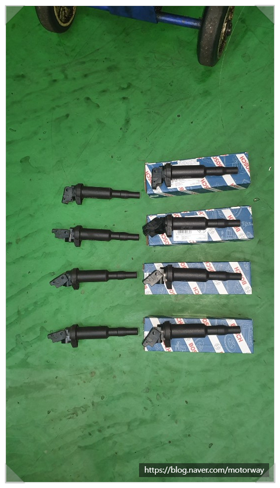 예열플러그 도 좋지 않은점 발견하고 앞에 워터펌프와 휀벨트도 교환시기가 지나서 같이 작업을 하게된 내용이다.