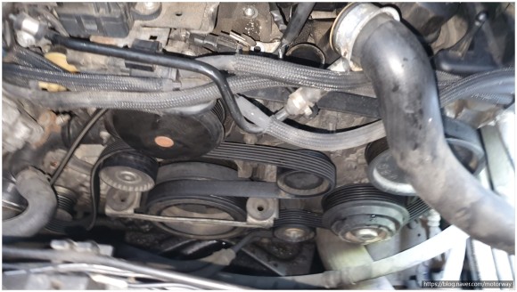 31. 워터펌프와 텐션 아이들 외부벨트 신품 사진