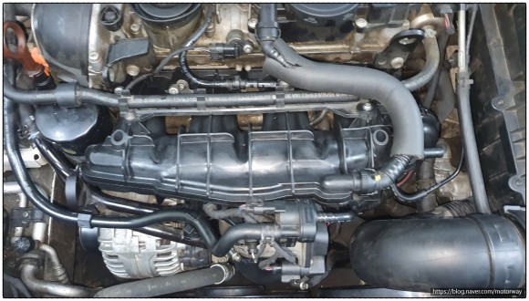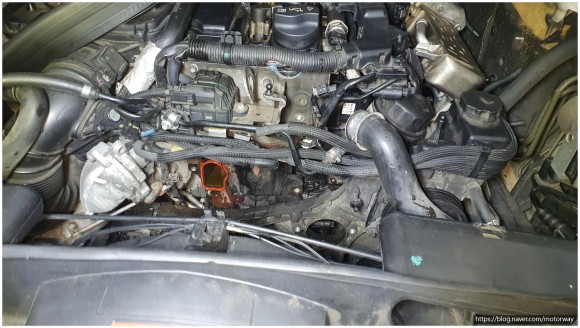 1. 흡기크리닝과 냉각수 파이프 흡기액츄에이터 모터를 교환하기 위해 작업을 하였다.