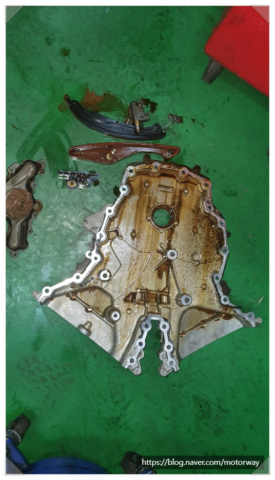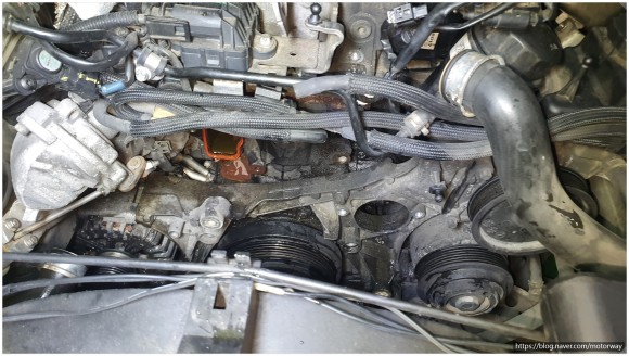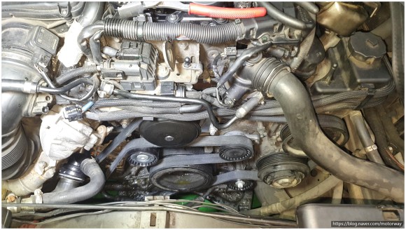 28. 외부 밸트 하고 워터펌프 텐션베어링 아이들 베어링까지 같이 작업을 하여 탈거전사진