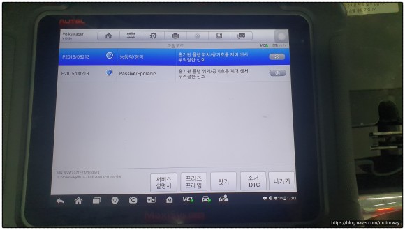 점검을 하여 보니 , 냉각수가 누수 되고 , 액츄에이터 모터가 카본이 많이 끼어서 손상되었다.