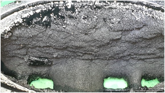 15. 흡기 매니폴더 안쪽에 카본이 쌓여 있는 사진